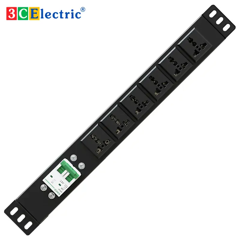 Sản phẩm Thanh nguồn PDU 19 inch, 06 ổ cắm 3 chấu chuẩn đa dụng có MCB, hãng 3CElectric®
